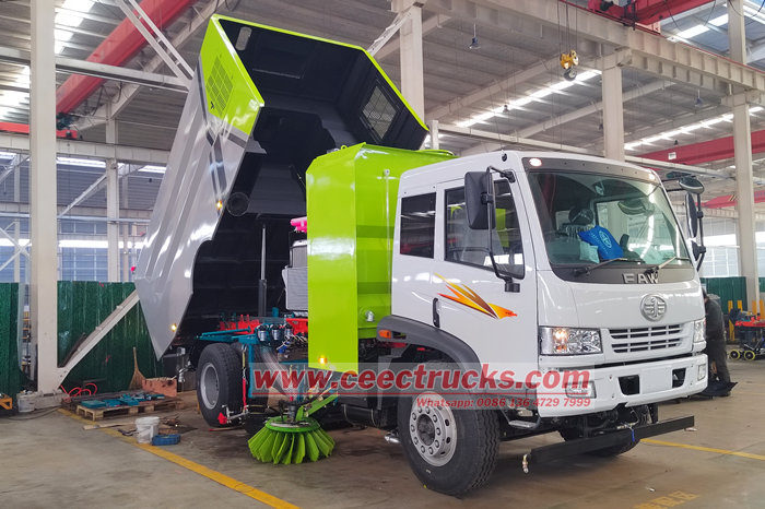 10 cbm road sweeping truck upper body kit (tinatawag ding street sweeper truck superstructure, sweeping vehicle upper body kit, street cleaning vehicle upper body, road cleaning truck upper body, street sweeper vehicle superstructure, broom sweeper truck upper body kit) ay uri ng vacuumed type na truck mounted road sweeping machine, espesyal itong ginagamit sa paglilinis ng kalsada at pagkolekta ng basura at pagdadala ng mga ito sa lugar ng pagkolekta ng basura.