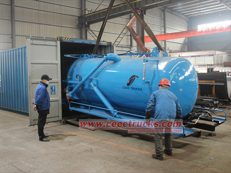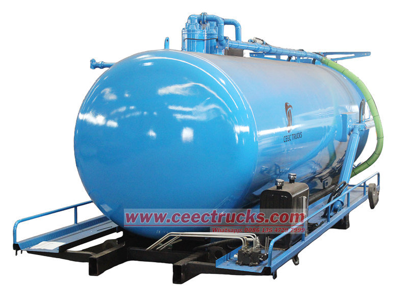 12,000L Truck mounted vacuum tanker unit (tinatawag ding 12 cbm vacuum suction pump truck upper body, 12,000 liters vacuum tanker truck superstructure, septic tank pump truck upper body kit, vacuum suction truck upper body, 12cbm vacuum sewage truck kit) naka-mount sa isang chassis ng sasakyan, ito ay sumisipsip at nangongolekta ng mga likido tulad ng dumi sa alkantarilya, putik, septic tank sediment, krudo, at maliliit na solidong labi, tulad ng maliliit na bato. Malawak itong magagamit sa paglilinis ng mga imburnal, septic tank, at kanal, na gumaganap ng mahalagang papel sa kalinisan ng munisipyo at pamamahala sa kapaligiran.