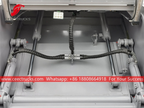 European standard na 6,000Liter na tumatanggi sa compressor truck body, na gumagamit ng high strength steel material compactor body, imported control PLC model, hydraulic cylinder control device, English version control box para sa madaling operasyon.