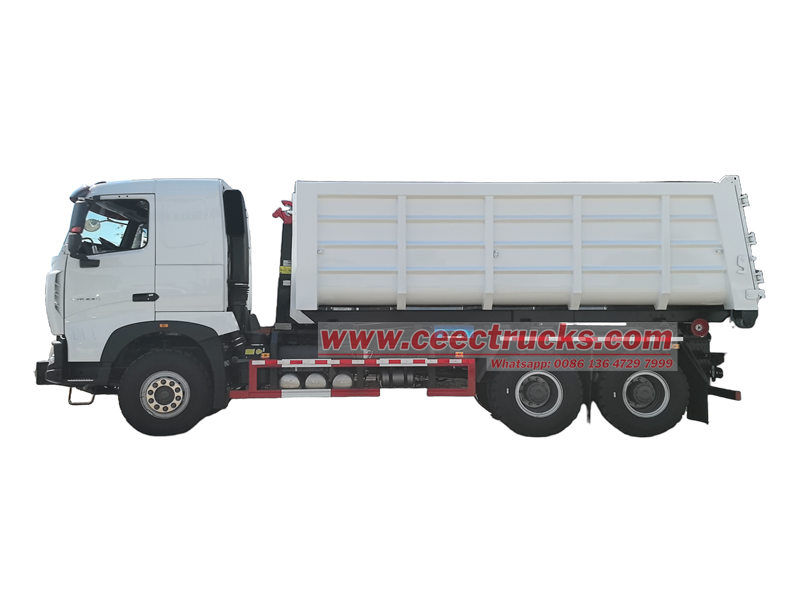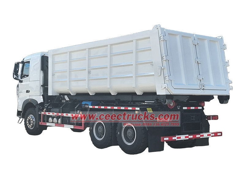 Ang siklo ng "isang sasakyan, maraming bin" na ito ay makabuluhang nagpapabuti sa paggamit ng sasakyan at pagkolekta ng basura at kahusayan sa transportasyon, na binabawasan ang mga gastos sa pagpapatakbo. Ang Howo hook loader truck ay madaling patakbuhin at angkop para sa iba't ibang senaryo ng koleksyon ng basura at transportasyon, kabilang ang mga pamayanan ng tirahan, kalye, pabrika, at mga lugar ng konstruksiyon, na nagbibigay ng mahusay at maaasahang suporta para sa kalinisan ng kapaligiran sa lungsod.