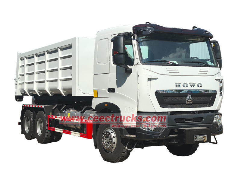 Ang Howo 20tons hook loader truck ay binago batay sa HOWO 6x4 T7H chassis. Nagtatampok ito ng 4325+1350mm wheelbase at nilagyan ng 440hp MC11.44-50 diesel engine na may displacement na 10.518L. Ito ay ipinares sa isang HW19710 ten-speed transmission (10 forward gears, 2 reverse gears), na nagbibigay ng malakas na kapangyarihan at maayos na paglilipat.