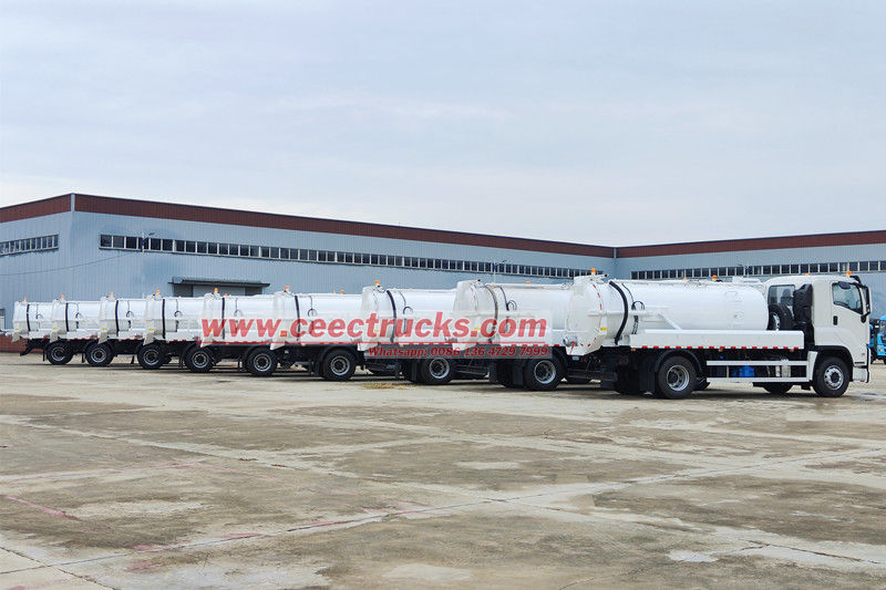 Sa panahon ng operasyon, dumadaong ang trak sa isang septic tank, sewer, o nakaharang sa tubo. Ang vacuum pump ay kumokonekta sa lalagyan ng basura sa pamamagitan ng suction hose. Sa pag-activate, mabilis itong nagkakaroon ng mataas na vacuum sa loob ng tangke, na ginagamit ang pressure differential upang puwersahang maglabas ng likido o semi-solid na basura, tulad ng dumi, dumi sa alkantarilya, at putik, sa tangke.