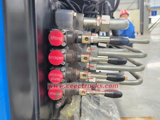 ● Ang paggamit ng precision hydraulic system at intelligent na electronic control module upang makamit ang tumpak na koordinasyon sa pagitan ng scraper at pusher blades, pagpapabuti ng compression ratio;