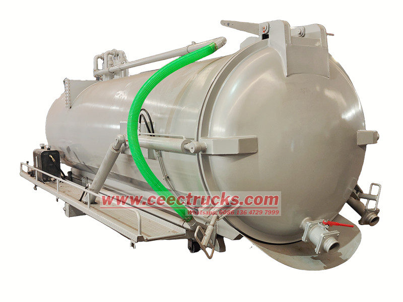 Ang 3000 gallon sewage suction tanker body nagtatampok ng isang bilugan na disenyo, na tinitiyak ang pare-parehong pamamahagi ng pagkarga at isang matibay na istraktura. Ang katawan ng tangke ay maaaring hydraulically lifted at ang likod na takip ay maaaring buksan, paggawa alwas episyente at maginhawa, ginagawa itong angkop para sa iba't ibang mga kondisyon sa pagtatrabaho.