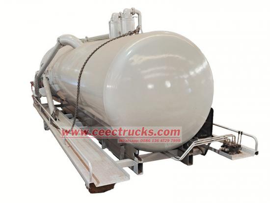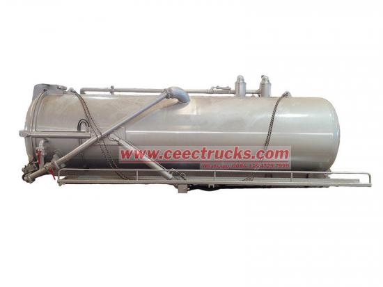 customized na 3000 gallons na katawan ng sewage suction tanker (tinatawag din na putik na vacuum pump tanker truck superstructure, 12cbm vacuum suction pump truck kit, vacuum sewage suction truck upper body kit, 3000 gallons gully sucker vacuum truck upper body, sewage disposal tank) ay gagamitin upang i-mount sa chassis upang linisin at mangolekta ng likido tulad ng maruming tubig, putik, septic, langis na krudo. Ito ay angkop para sa paglilinis ng imburnal, cesspit, cesspool, gully, atbp. Ito ay malawakang ginagamit sa kapaligiran at larangan ng kalinisan.