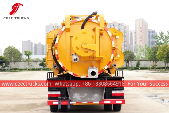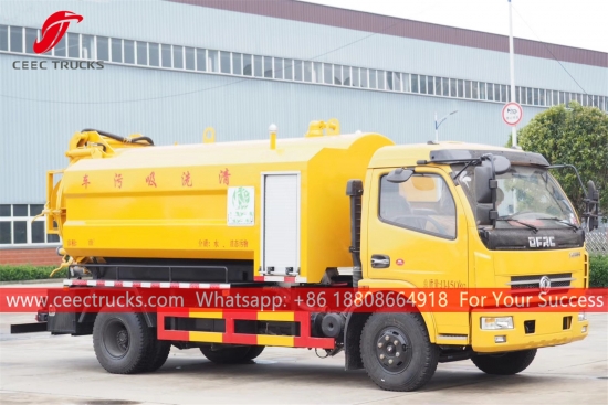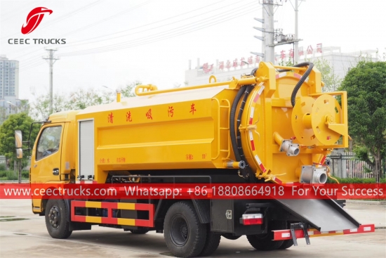 Combined Jetting Suction Truck Dongfeng (tinatawag ding Combined vacuum jeting truck, suction jet truck, combination sewer cleaning truck, pinagsamang jetting suction vehicle, jetting at vacuum truck, vacuum sewage jetting combined truck , pinagsamang jetting at suction truck ) ay isang sasakyan na idinisenyo upang alisin ang anumang bara sa pamamagitan ng jetting mga nozzle na gumagalaw sa pipeline ng dumi sa alkantarilya sa ilalim ng mataas na presyon, at nililinis ang mga linya ng paagusan ng alkantarilya sa pamamagitan ng isang malakas na vacuum suction upang sipsipin ang lahat ng tubig at putik mula sa butas ng alkantarilya. Ang trak na ito ay malawakang ginagamit para sa pangangalaga sa kapaligiran.