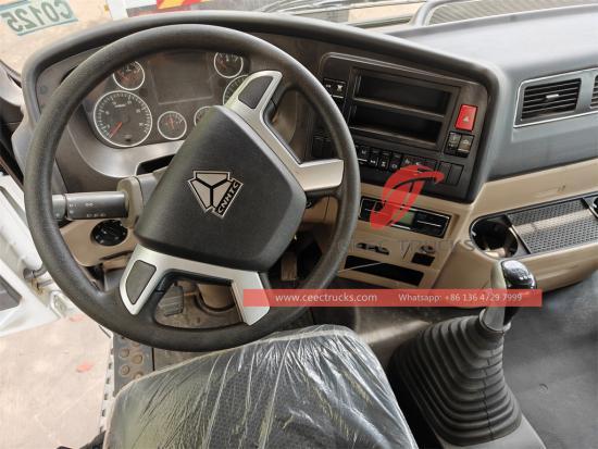 1. Mataas na load-bearing capacity at passability: Ang Howo heavy-duty cargo truck na may 20tons crane ay may 6x4 drive form, rear double-axle drive + front axle steering, makatwirang axle load distribution, malakas na load capacity, kadalasang 30-35 tonelada, na angkop para sa heavy-load na transportasyon, at mahusay na kakayahang makatakas mula sa kumplikadong mga kondisyon ng kalsada tulad ng putik at mga rampa. Gumagamit ito ng mga high-strength steel beam na may malakas na torsion resistance, at nilagyan ng multi-leaf spring suspension, na may mataas na load-bearing stability.