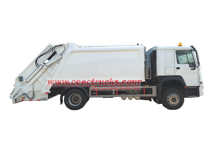 Ang HOWO 14cbm rear loader compactor truck (tinatawag ding waste compaction truck, side load garbage truck, garbage compactor truck, rear loader waste collection truck, trash compactor truck) ay isang bagong uri ng sanitation vehicle na espesyal na ginagamit para sa pangongolekta, paglilipat at pag-alis ng basura.