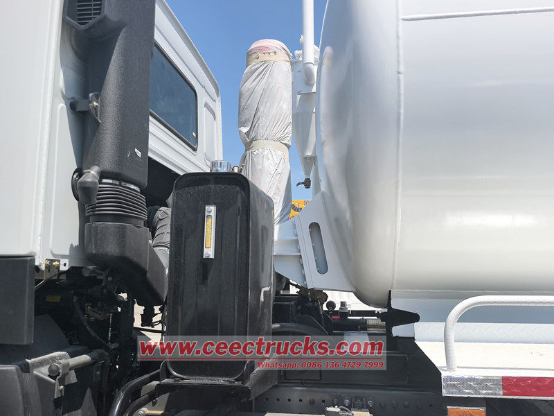 Ang Howo 20,000 liters vacuum tanker truck ay nakabatay sa HOWO 6x4 chassis, na may wheelbase na 4325+1350mm,12.00R20 na gulong na may kabuuang 11 pcs, na nilagyan ng 400hp WP12.400E321010, gearbox-for-diesel na makina at isang HWO verse 197 gearbox, gearbox para sa gearbox. ZF8198 steering gear, na makapangyarihan at madaling patakbuhin. Ito ay may mga function ng self-priming, self-draining at self-unloading. Ito ay may malakas na pagsipsip at mataas na kahusayan, ang tangke ng katawan ay maaaring mabilis na mapuno at mahusay na pinatuyo sa isang solong operasyon.