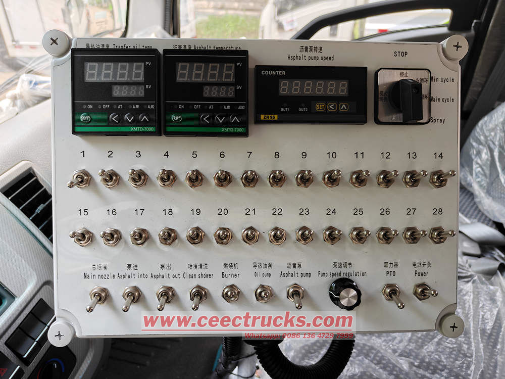 Ang driver ay maaaring madaling ayusin ang asphalt spraying amount, flow rate, speed at range sa pamamagitan ng control system upang matiyak na ang mga parameter ng konstruksiyon ay tumpak na nakokontrol upang matugunan ang mga pangangailangan ng iba't ibang konstruksyon ng kalsada.