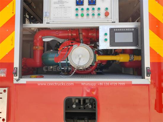 Mataas na bilis ng pagmamaniobra: Ang mga makinang may mataas na lakas (tulad ng 400-horsepower na diesel engine) ay nagbibigay ng masaganang torque at acceleration performance, na nagpapaikli sa oras upang makarating sa pinangyarihan ng sunog. Halimbawa, maaari pa rin nitong mapanatili ang high-speed na pagmamaneho sa ilalim ng full load (tangke ng tubig + kagamitan) upang maiwasan ang mga pagkaantala sa pagliligtas dahil sa hindi sapat na kapangyarihan. Ang patuloy na suporta sa pagpapatakbo, ang mataas na lakas-kabayo ay maaaring suportahan ang mga high-pressure na bomba ng tubig, mga hagdan, mga sistema ng pag-iilaw at iba pang kagamitan upang tumakbo nang sabay, na iniiwasan ang hindi sapat na presyon ng tubig o pagwawalang-kilos ng kagamitan dahil sa power diversion.