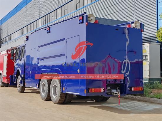 High-strength aluminum alloy or titanium alloy framesHowo 6x4 anti riot water cannon vehiclegumagamit ng all-round explosion-proof na disenyo ng mga materyales, istruktura at sistema upang matiyak ang ligtas at mahusay na pagpapatupad ng mga gawain sa matinding kapaligiran.Ang driver ay kailangang magkaroon ng parehong mga espesyal na kasanayan sa pagmamaneho at mga kakayahan sa pagtugon sa emerhensiya, at ang kanyang operasyon ay higit na nakatuon sa mga hakbang sa kaligtasan sa pag-iwas at mga remote collaborative na operasyon. Ang Howo armored crowd control riot truck ay isang kailangang-kailangan na kagamitan sa kaligtasan sa larangan ng petrolyo, industriya ng kemikal, atbp.