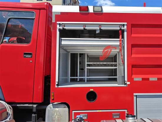 Ang fire rescue special truck, na itinayo sa matibay na Howo 6x4 heavy-duty chassis, ay nagsasama ng mahusay na lakas ng 371HP, maaaring hamunin ang lahat ng uri ng mahihirap na kalsada, at naglalagay ng magandang pundasyon para sa emergency fire rescue. Ang Howo fire truck ay nilagyan ng 6000-litro na tangke ng tubig na may malaking kapasidad at isang PS professional fire pump, na may mahabang spray distance na hanggang 65m. Ang pagpapakilala ng operasyon, opsyonal na wika ng control panel, at iba't ibang opsyonal na pagsasaayos ay ibinigay upang matugunan ang iba't ibang pangangailangan. Ang Howo fire water truck na ito ay nagbibigay ng solidong proteksyon para sa kaligtasan ng sunog at nagpapakita ng mahusay na pagganap at flexibility.