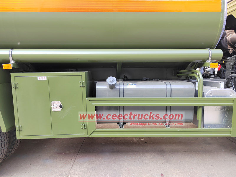 Ang HOWO 6x6 military mobile fuel dispenser truck ay batay sa HOWO 6x6 chassis, nilagyan ng 400hp WP12.400E22 diesel engine at isang HW19710 gearbox, na nilagyan ng 12.00R20 na gulong at ZF8118 steering gear, na makapangyarihan at madaling patakbuhin. Kung ito man ay isang construction site, malayong kalsada, paliparan o minahan, ang refueling truck ay maaaring dumating nang flexible, mag-refuel ng kagamitan sa oras at matiyak ang normal na operasyon ng produksyon at buhay.