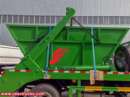 Ang CEEC TRUCKS skip bin loader ay isang garbage truck na may nababakas na lalagyan ng katawan, na maaaring paganahin ang isang trak na may maraming lalagyan ng basura para sa paggamit ng recycle.