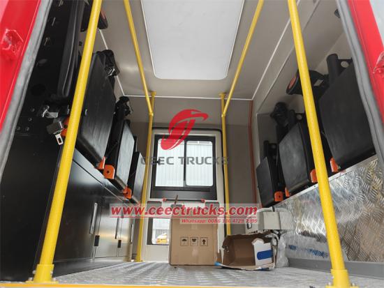 Ang Sinotruk HOWO fire truck ay gumagamit ng single cabin row integral structure, at naka-mount na may independent cabin para sa 6-8pasahero, lahat ay may SCBA na upuan para sa air breathing apparatus. Nangungunang 1 Chinese brand na WEICHAI diesel engine na may 400HP, HW19710 manual gearbox na may 10 pasulong at 2 reverse pabalik. Built in water tank at foam tank, water Tank volume 5000kg, A-Type foam volume 2000kg o B-Type foam volume 2000kg, at ang all tank body ay gawa sa stainless steel 304 composite material.