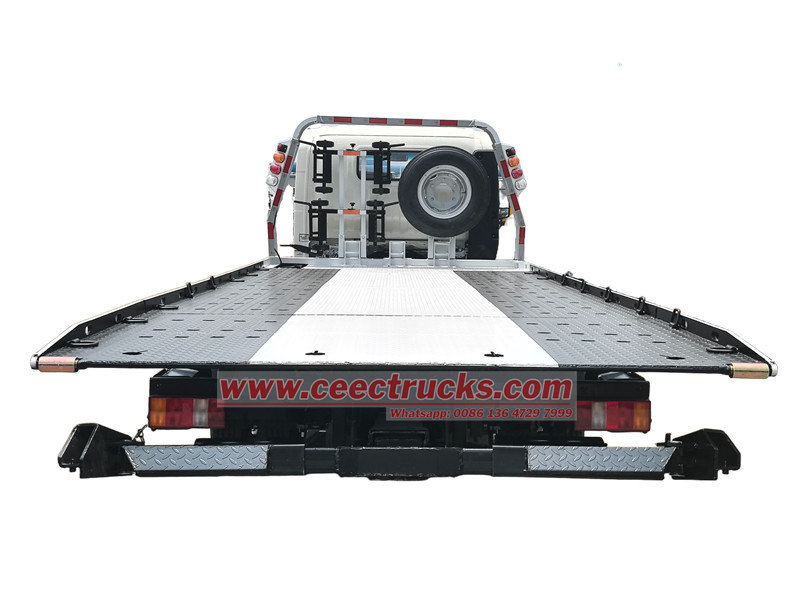 ● Lifting device: Nilagyan ng front bracket at rear bracket, ang mga gulong ng sira na sasakyan ay inaayos ng spring pins, pins, at fastening zippers upang matiyak ang katatagan ng sasakyan sa panahon ng transportasyon.