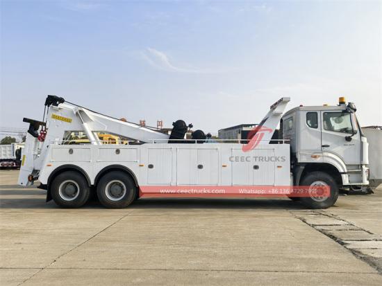 Ang mabigat na ito duty wrecker, built by CEEC Trucks Group, utilizes the Howo NX cabin 6 x 4 drive chassis and is equipped with a powerful Howo WP10.340E22 diesel engine (3 4 0 HP /1250N . m of torque) and an HW1 9710 10 -speed transmission. Combined with an HF9-ton front axle and HC16-ton rear axle, it ensures exceptional power, load-bearing capacity, and reliability. It incorporates two 1 2 ton s hydraulic winches, resulting in an impressive rated towing capacity of 30 tons, making it ideal for handling accidents involving large trucks, buses, and construction machinery.