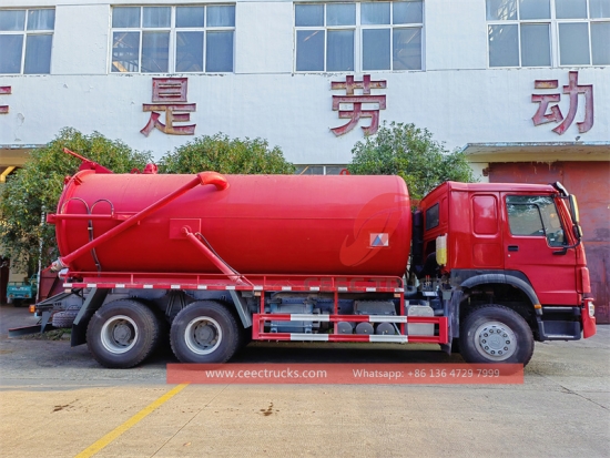 CEEC TRUCKS Ang Howo right hand drive vacuum tank truck ay nilagyan ng WEILONG o Italy MORO / BP vacuum pump, para sa 10CBM o higit pang inirerekomenda ang Double Pump para sa mahusay na paggana.