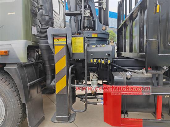 Ang HOWO 4x2 8-ton truck mounted crane na ginawa ng POWERSTAR ay may chassis na may wheelbase na 4500mm at nilagyan ng Sinotruk MC05.21-50 Euro V engine na may 210 horsepower at maximum na torque na 830N.m, isang DC7J100TC na gearbox na may kapal na apat na side. Ang sasakyan ay nilagyan ng XCMG KSQS200 4-section straight-arm crane na may maximum lifting weight na 8 tonelada at 360-degree na buong pag-ikot. Nilagyan ito ng 4 na hydraulic outrigger. Ang sasakyan ay may tatlong manual hydraulic operating levers upang kontrolin ang vertical at horizontal extension at retraction ng hydraulic outriggers, ang extension at retraction ng boom, at ang extension at retraction ng hook.
