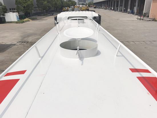 Ang Isuzu 20 cbm potable water hauling tanker ay binago ito sa Isuzu GIGA 6x4 chassis, Isuzu 6UZ1-TCG61 380HP engine, inline 6 cylinder, maximum output 279kW, Fast-12 gears gearbox, 12-forward gear, 2-forward gear. ang itaas na bahagi ay isang 20cbm na hindi kinakalawang na asero na tangke ng tubig, Ito ay na-configure na may front flush, rear sprinkler at side spray, May gumaganang platform sa likuran ng tangke, kung saan naka-install ang isang greening sprinkler. Ang katawan ng kanyon ay maaaring paikutin at ang dami ng tubig ay maaaring maisaayos (i-spray sa mga hugis columnar, ambon, o ambon).