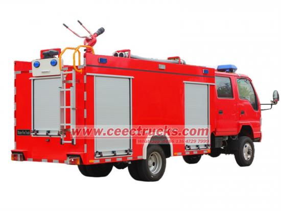 Isuzu offroad spraying Water Firefighter Truck 3000 Liters refitted mula sa ISUZU 4x4 offroad model truck chassis, ISUZU truck chassis ay QL1073BUHAY, . Ang Isuzu fire engine na may mga tagagawa ng chassis original firefighter's passenger crew cabin number 2+4 people. Gumagana ang trak ng bumbero habang ang transmission ng chassis engine ay nagpapadala ng kapangyarihan sa bomba ng sunog sa pamamagitan ng drive shaft. Ang bomba ng sunog ay nag-i-spray ng tubig sa tangke sa pamamagitan ng monitor ng sunog.Kabilang sa mga pangunahing bahagi ang uri ng sandwich na PTO, mekanismo ng paghahatid, bomba ng sunog, monitor ng sunog, tangke , pipeline ng tubig, kompartamento ng kagamitan at kagamitan sa paglaban sa sunog, sistema ng kontrol sa kuryente, atbp.