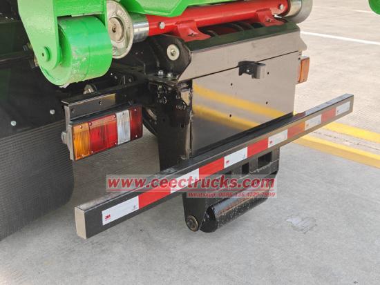 Kapag dumating ang sasakyan sa lugar ng pangongolekta ng basura, kinokontrol ng hydraulic system ang braso na ibababa, at ikinakabit ng hook ang front connection point ng garbage bin sa lupa, at pagkatapos ay binawi ang braso upang maayos na hilahin ang garbage bin sa likurang upuan ng katawan ng sasakyan. Pagkatapos ihatid sa itinalagang lokasyon, kinokontrol ng hydraulic system ang braso upang iangat at i-flip, upang ang basurahan ay tumagilid sa isang tiyak na anggulo upang makamit ang self-unloading ng basura.