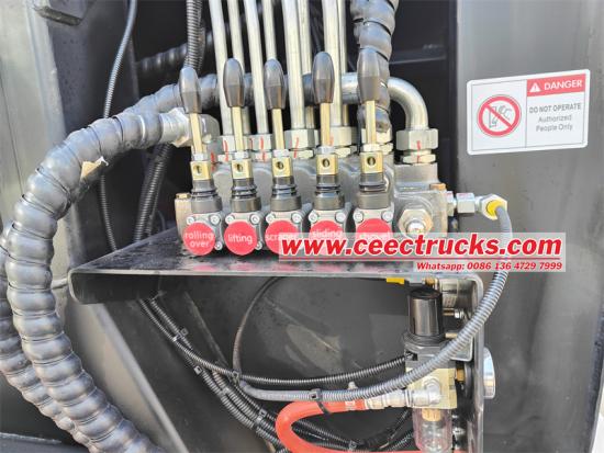 Ang disenyo ng hook lift ay isa pang highlight ng trak na ito ng basura Ginagawa ng disenyo na ito ang pag -load at pag -load ng operasyon ng trak ng basura at mas mabilis Sa pamamagitan ng pag -angat at pag -ikot ng braso ng hook, ang basurahan ng basura ay maaaring mabilis na mapalitan at nakaposisyon, lubos na nagpapabuti ng kahusayan sa trabaho Bilang karagdagan, ang disenyo na ito ay nagpapadali sa pang -araw -araw na paglilinis at pagpapanatili ng sasakyan, na nagpapalawak ng buhay ng serbisyo ng sasakyan