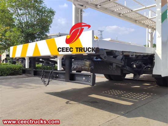 Ang car carrier ay may double-layer loading platform structure, at ang upper loading platform ay maaaring itaas at pababa sa ilalim ng pagkilos ng lifting device upang mapadali ang pagkarga.