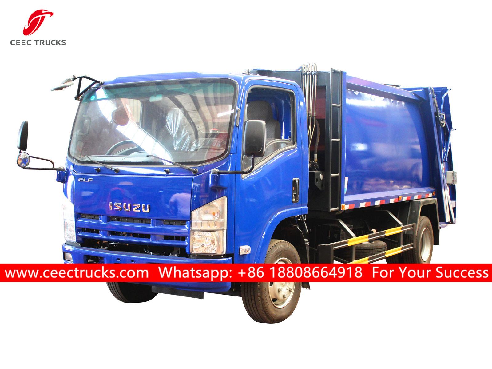 ISUZU 8,000 liters garbage compactor truck, ISUZU 700P 4*2 chassis, ISUZU 190HP diesel engine, MLD 6-shift manual gearbox para sa madaling pagmamaneho, PLC control box.