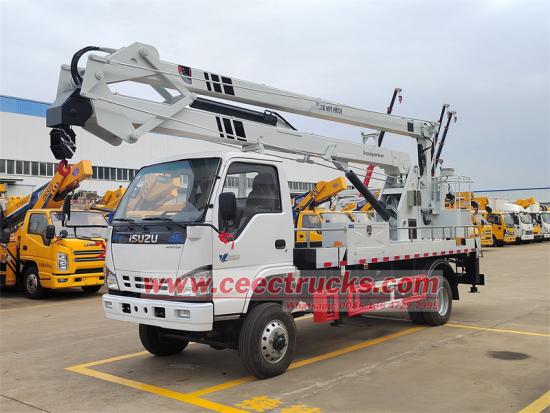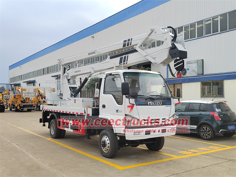 Isuzu manlift truck alsocalled aerialplatformtruck articulatedboomlift, truckmountedaerialplatform, aerialworkplatform, hydraulicbeam lifter, bucket truck, bucket boom truck, trak mount crane, trak mount aerial lift, telescopic platform truck, aerial working platform, trak mount aerial working platform na may taas na nagtatrabaho sa aerial 14m, 16m, 18m, 20m, 22m, 24m, 26m, 28m, 30m, 32m At ang sistema ng pag-ikot ay magpapahintulot sa patuloy na pag-ikot ng 360-degree, na may isang sistema ng kaligtasan upang maiwasan ang mga biglaang patak kung sakaling mabigo.