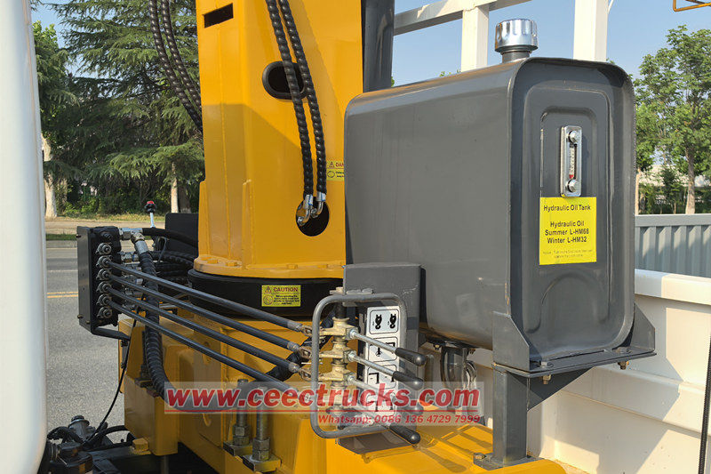 Ang Isuzu boom crane truck na ito ay ginawa mula sa ilang mahahalagang bahagi, gaya ng boom, turntable, frame, at legs. Ang on-board crane ay nagsasagawa ng mga mekanikal na paggalaw tulad ng luffing, telescoping, rotating, at winching, at nakakamit ang lifting operations sa pamamagitan ng coordinated combination ng mga pagkilos na ito.