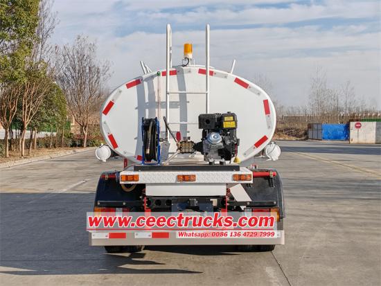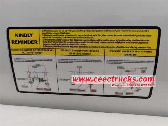 Para sa mga pagdidilig ng operasyon, ang trak ay nilagyan ng isang elliptical carbon water tank na may kapasidad na hanggang sa 5000L Ang disenyo na ito ay hindi lamang nagdaragdag ng kapasidad ng imbakan ng tubig ngunit ginagawang mas compact din ang istraktura ng tangke, pinadali ang maliksi na kakayahang magamit ng trak sa makitid na mga kalye sa lunsod Bilang karagdagan, ang pagsasama ng isang 65QZF-40/50 na bomba ng tubig ay nagbibigay ng trak ng tubig na may tubig na may malakas na presyon ng tubig at matatag na daloy, tinitiyak ang kahusayan at pagkakapareho ng operasyon ng pagdidilig