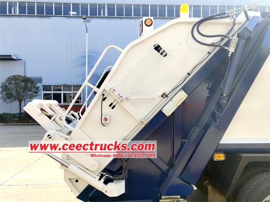 Mekanismo ng pag -load ng likuran:Mayroon itong isang likurang naka-mount na flip-type na mekanismo ng pag-aangat ng basura, na nagpapahintulot sa sasakyan na madaling mag-hook up at i-flip sa isang karaniwang basurahan upang makamit ang awtomatikong pag-load ng basura Ang disenyo na ito ay nakakatulong upang mai -load ang basura nang madali at mahusay