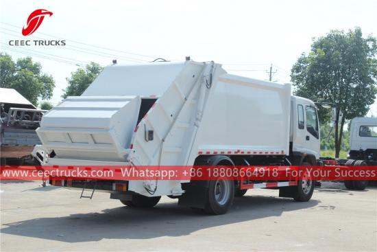 ISUZU FVR Compressed refuse truck (tinatawag ding refuse compactor, ISUZU FVR rear loader, brand new ISUZU trash compactor truck, compressed garbage truck, ISUZU garbage compressor truck, waste compactor manufacturer sa China) ay idinisenyo para sa pang-araw-araw na transportasyon ng basura sa mga lugar na tirahan gaya ng lahat ng uri ng lungsod, malaking istasyon, daungan at pantalan, paliparan, at makapal ang populasyon mga lugar tulad ng mga industriyal at mineral na negosyo at mga yunit ng militar.