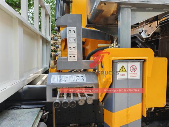 Pagsasama ng logistik at engineering: Walang karagdagang crane o forklift ang kailangan, at ang isang sasakyan ay maaaring kumpletuhin ang buong proseso ng cargo loading, transportasyon, at pagbabawas. Ito ay angkop para sa mga malalayong lugar ng konstruksyon o pansamantalang mga lugar ng imbakan na walang pantulong na kagamitan. Kasabay nito, pinapabuti nito ang pagiging maagap at binabawasan ang oras ng paghihintay para sa pag-iiskedyul ng kagamitan, tulad ng mabilis na pagtaas ng mga materyales sa gusali o kagamitan sa mga proyektong pang-emerhensiyang pagkukumpuni.