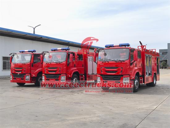 Ang CEEC TRUCKS ay gumawa ng ISUZU GIGA 4X fire truck na may wkapasidad ng tangke: mga 5000Liter at foam tank capacity na 500Liters, nilagyan din ng CAFS water foam mixing system.Ang Crew compartment ay naka-customize na double row cab, na kayang tumanggap ng 2+4 na tao, lahat ay nilagyan ng SCBA seats para sa air apparatus, napaka-angkop para sa mabilis na pagtugon.Nilagyan ng CB10/40 fire pump na may flow rate na 40L/s sa pressure na 1.0MPa.Ang modelo ng fire cannon ay PL32, na maaaring maglabas ng tubig at foam, na may jetting range na ≥55 metro (tubig) o ≥50 metro (foam).
