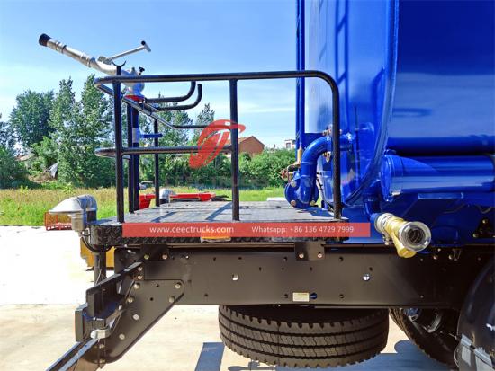 Ang Isuzu GIGA 30000L water tanker ay may mahusay na pagganap sa pag-spray ng tubig, Pagsipsip ≥ 12m, Sprinkler width ≥ 18m, Water cannon Range ≥ 38m. Ang Isuzu GIGA water tanker ay nilagyan din ng front water spraying nozzles, rear water spraying nozzles at water spraying monitor, na maaaring magkaroon ng multi-angle at all-round water spraying operations. Bilang karagdagan, mayroong isang gumaganang platform sa likuran, at naka-install ang isang high-pressure na water spray gun. Ang hugis ng spray gun ay maaaring iakma ayon sa aktwal na mga pangangailangan, tulad ng malakas na pag-ulan, katamtamang pag-ulan, pag-ulan) o manipis na ulap at iba pang iba't ibang mga mode upang matugunan ang iba't ibang mga senaryo ng operasyon.