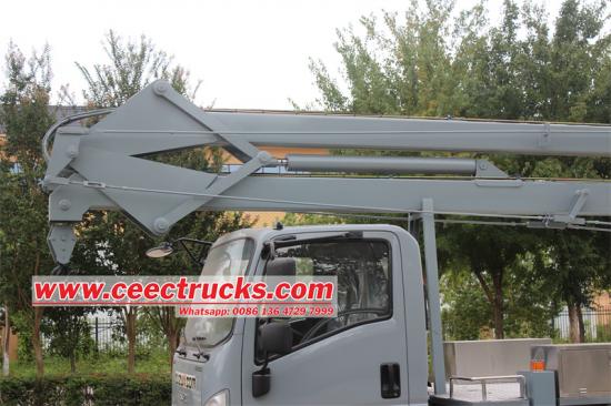3 section folding arm with 14m working heightISUZU KV100 14M articulated boom aerial work truck ay isang mataas na pagganap na kagamitan sa aerial na gawa sa trabaho na idinisenyo para sa mahusay, nababaluktot, at ligtas na mga kinakailangan sa operasyon Ang pangunahing kapangyarihan nito ay nagmula sa ISUZU 4KH1CN6HB engine, na may isang maximum na lakas ng 132 lakas -kabayo, na nagbibigay ng malakas na kapangyarihan upang madaling hawakan ang iba't ibang mga kumplikadong kondisyon sa pagtatrabaho Naitugma sa ISUZU MLD 6-speed transmission, nag-aalok ito ng makinis na paglilipat, simpleng operasyon, at mataas na pagiging maaasahan Ang sasakyan ay nilagyan ng isang three-section na articulated boom na istraktura, na may isang maximum na taas ng pagtatrabaho na 14 metro at isang malaking saklaw ng pagtatrabaho, na nagbibigay-daan sa kakayahang umangkop na tumawid sa mga hadlang at umangkop sa maraming mga sitwasyon sa pang-aerial na trabaho