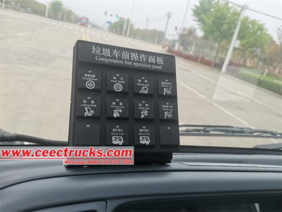 Ipinagmamalaki ng trak Mga Advanced na Sistema ng Kontrol na mapadali ang madali at mahusay na operasyon Nagtatampok ito ng isang Taiwan Yonghong PLC (Programmable Logic Controller) Electrical Control System, na nagbibigay -daan para sa tumpak at maaasahang automation ng proseso ng compaction ng basura Mayroong dalawang hanay ng mga pindutan ng elektrikal na kontrol na madiskarteng inilagay para sa kaginhawaan ng operator: isang set sa loob ng taksi ng driver at isa pang set sa kaliwang bahagi ng tailgate Bilang karagdagan, ang trak ay nilagyan ng isang hydraulic manual na aparato ng operasyon na matatagpuan sa likuran ng taksi, na nagbibigay ng isang alternatibong pamamaraan ng pagkontrol sa mga function ng compaction ng basura sa kaso ng pagkabigo ng elektrikal na sistema o para sa manu -manong override Tinitiyak ng dual control system na ang trak ay maaaring pinatatakbo nang maayos at mahusay, matugunan ang magkakaibang mga pangangailangan ng mga operasyon sa pamamahala ng basura