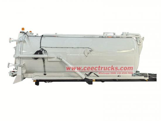 Pangunahing binubuo ang septic tanker truck body ng 10cbm vacuum tank, vacuum pump, suction hose, at hydraulic system. Ang tangke ay ginawa mula sa mataas na lakas na bakal, na tinitiyak ang mahusay na sealing upang maiwasan ang pangalawang kontaminasyon. Ang MORO vacuum pump ay nagbibigay ng malakas na pagsipsip, mabilis na nakakakuha ng putik, dumi sa alkantarilya, at slurry. Ang sewage suction pipe ay maaaring patakbuhin nang may kakayahang umangkop upang matugunan ang mga pangangailangan ng maramihang mga sitwasyon ng operasyon.