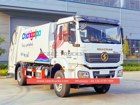 Shacman H3000 waste compactor 20 CBM para sa Africa, ISM11E4 385HP Euro 4 engine, FAST 12-shift manual gearbox para sa madaling operasyon, nilagyan ng CAN-bus control system para sa madaling operasyon.