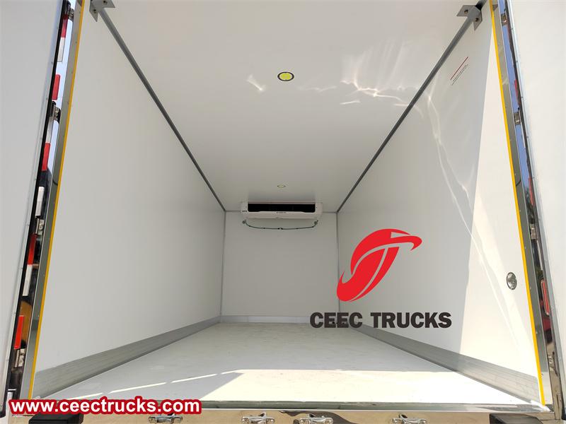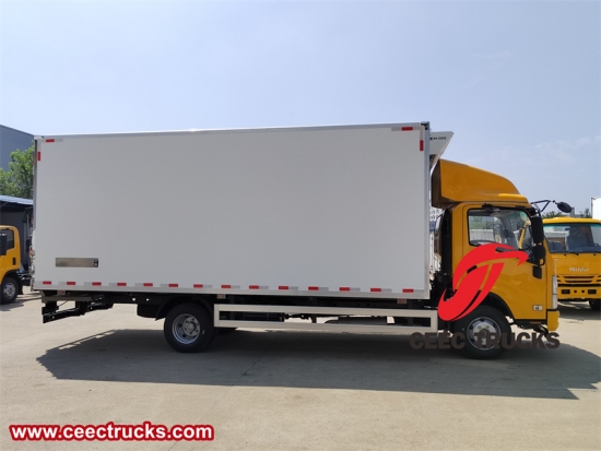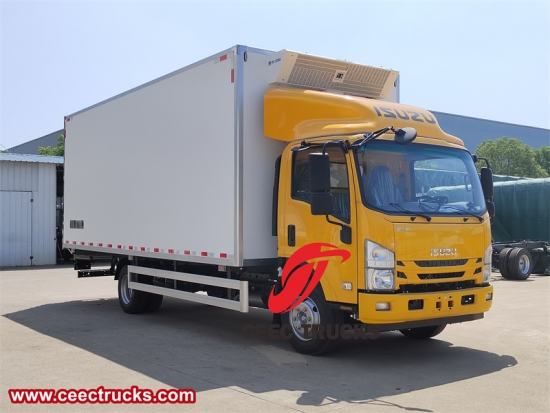 Ang Isuzu 700P refrigerated truck ay nilagyan ng makapangyarihang refrigeration unit na maaaring patuloy na mapanatili ang mababang temperatura. Ang Isuzu refrigerated truck ay isang refrigerated truck na ginagamit upang maghatid ng mga refrigerated at frozen na item. Ang pangunahing layunin nito ay magbigay ng mahusay at maaasahang cold chain logistics solutions para sa komersyal o industriyal na larangan. Ang mga Isuzu refrigerated truck ay malawakang ginagamit sa industriya ng pagkain. Ang transportasyon ng malamig na chain ay mahalaga para sa kaligtasan ng pagkain, lalo na para sa mga pagkaing nabubulok na kailangang panatilihing sariwa, tulad ng karne, mga produktong tubig, prutas at gulay.